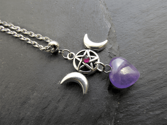 Triple Moon Goddess Amethyst Necklace
