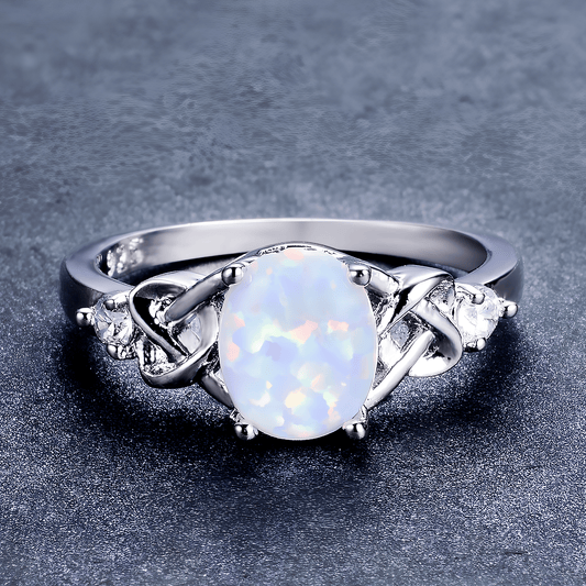 Goddess of Light White Fire Opal Amethyst Ring
