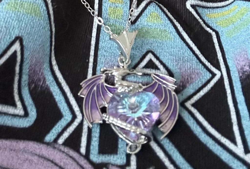 I love the heart gemstone that turns from blue to purple, I appreciate the sterling silver since I’m never a fan of gold, and I love the dragon with his tail wrapped around the heart! My local post office is who delivered it 5 days later than you said. Stupid post office I have in my town.