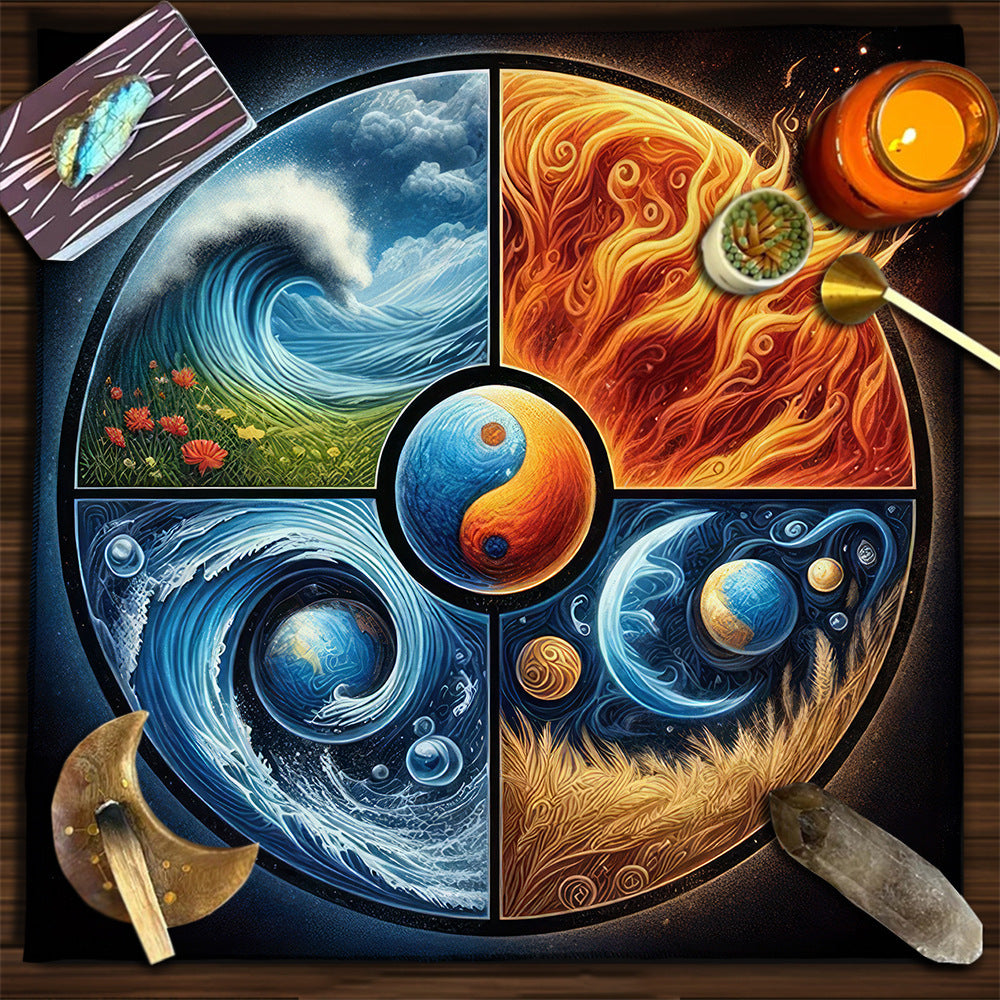Elevate your tarot readings and altar setup with the Celestial Harmony Tarot Tablecloth—a beautifully designed cloth that blends Wiccan symbols, constellations, and moon phases into one sacred canvas.