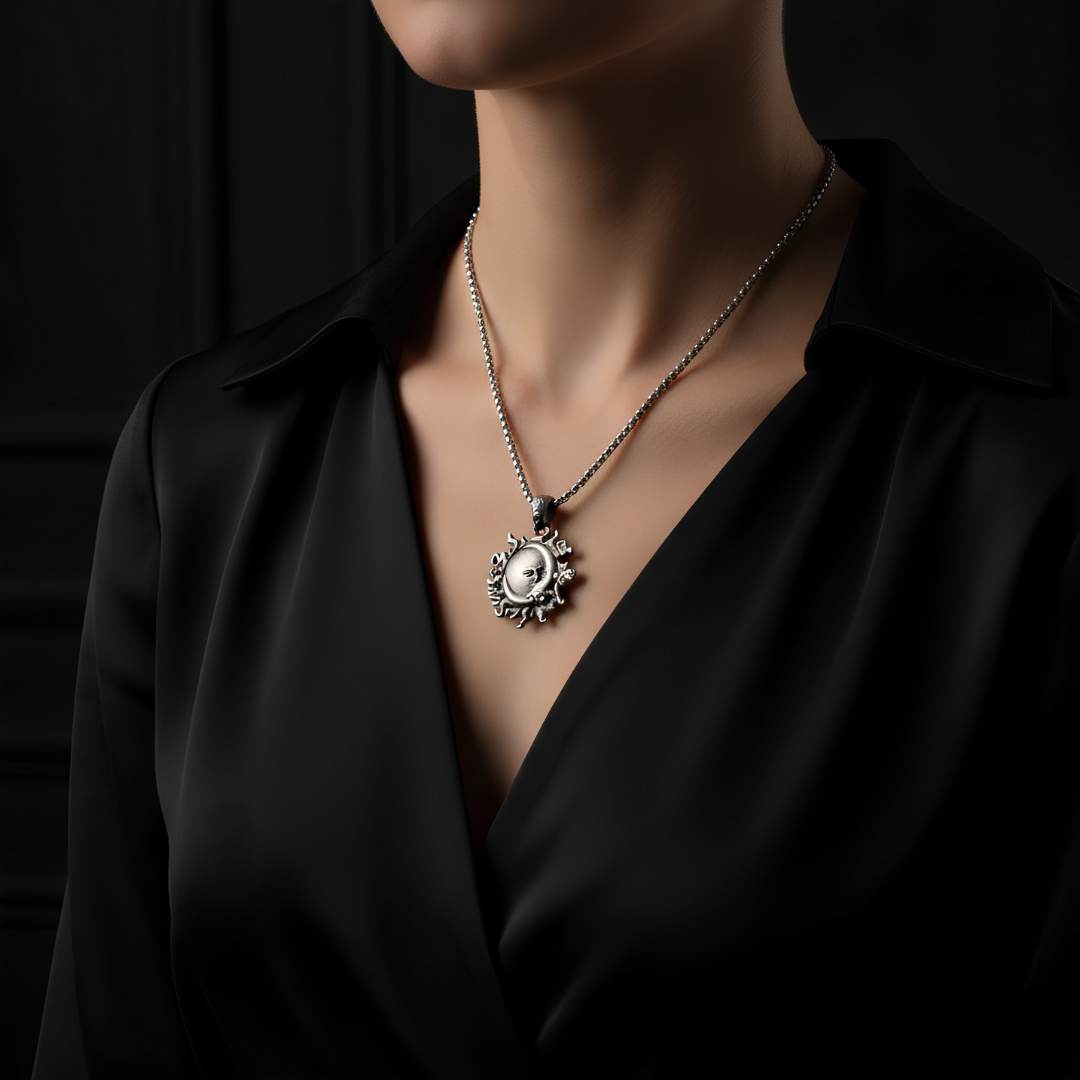This talisman carries the energy of wholeness—reminding the wearer to embrace both the gentle and the fierce within. Rooted in old-world celestial symbolism, it serves as a protective charm and a spiritual anchor during times of transition, reflection, and alignment.