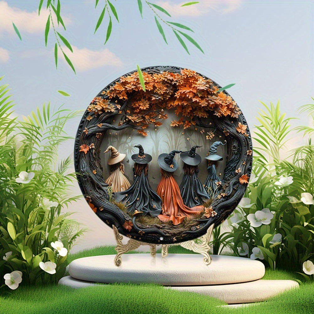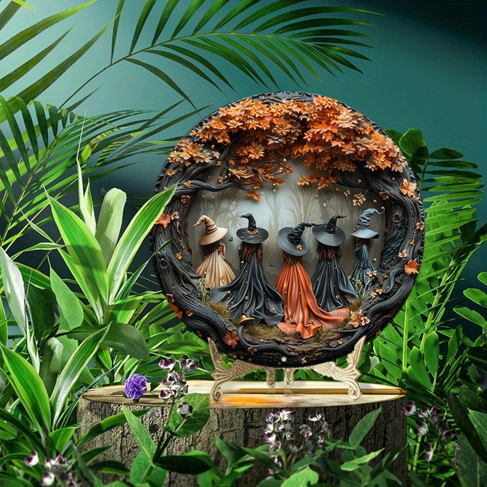 Celebrate the beauty of sisterhood, magick, and the turning of the seasons with the Autumn Witchwalk Hanging Sign. This captivating round decor features five witches strolling through a twilight forest beneath a canopy of fiery autumn leaves—each in a flowing cloak, each with a story to tell.