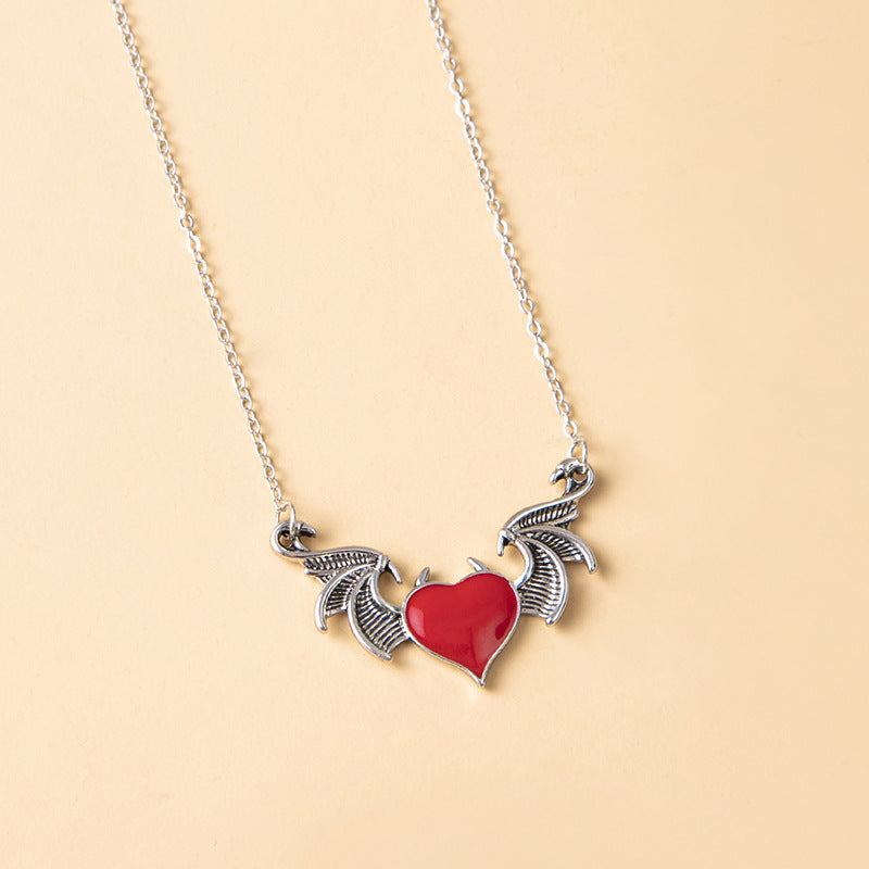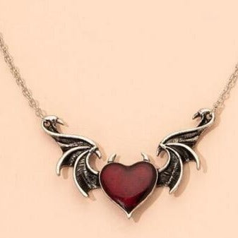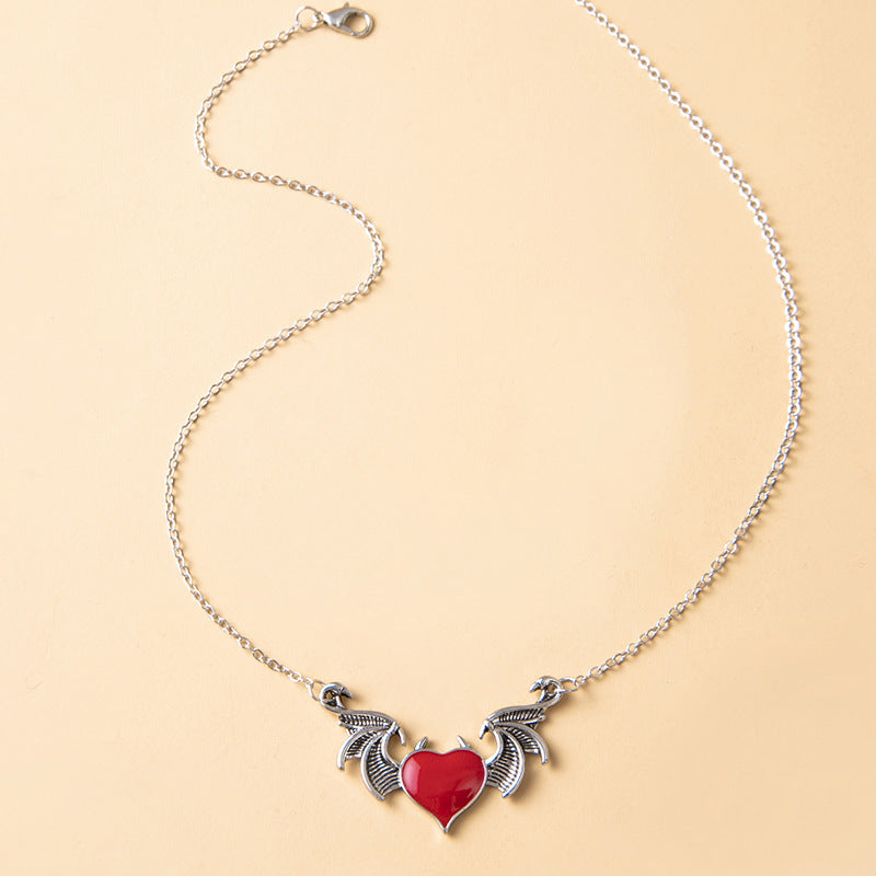 The Crimson Devil Heart Winged Necklace blends dark romance with a bold edge. Featuring a deep red heart with demon horns and bat-like wings, this striking piece symbolizes passion, rebellion, and untamed spirit.