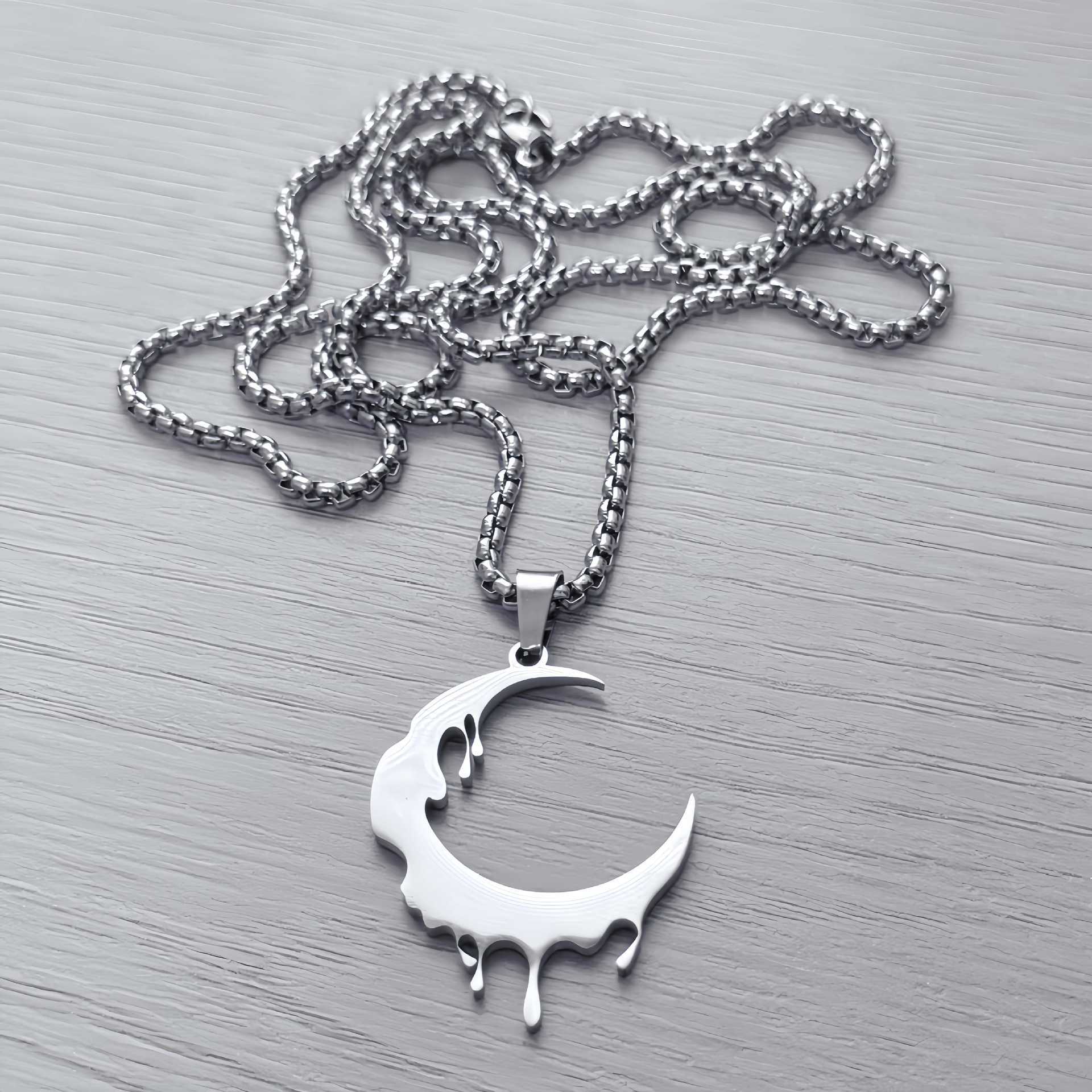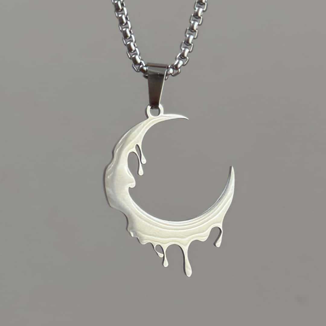 The Dripping Crescent Moon Necklace is a hauntingly beautiful talisman that captures the raw essence of lunar magick. Shaped as a crescent moon melting into streams of silver flow, it symbolizes the eternal transformation of shadow into light, mystery into revelation, and endings into beginnings.
