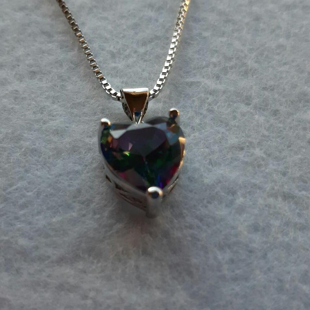 • Pendant: Single heart-shaped Rainbow Topaz crystal, 10MM