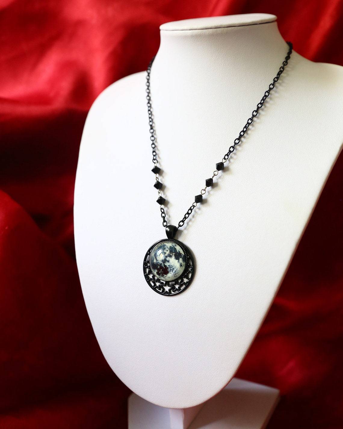 This exquisite Magickal Full Moon Gothic Necklace showcases a large pendant featuring an eye-catching and enchanting moon with a magickal aura. It is perfect for adding a sophisticated and mysterious touch to your look.