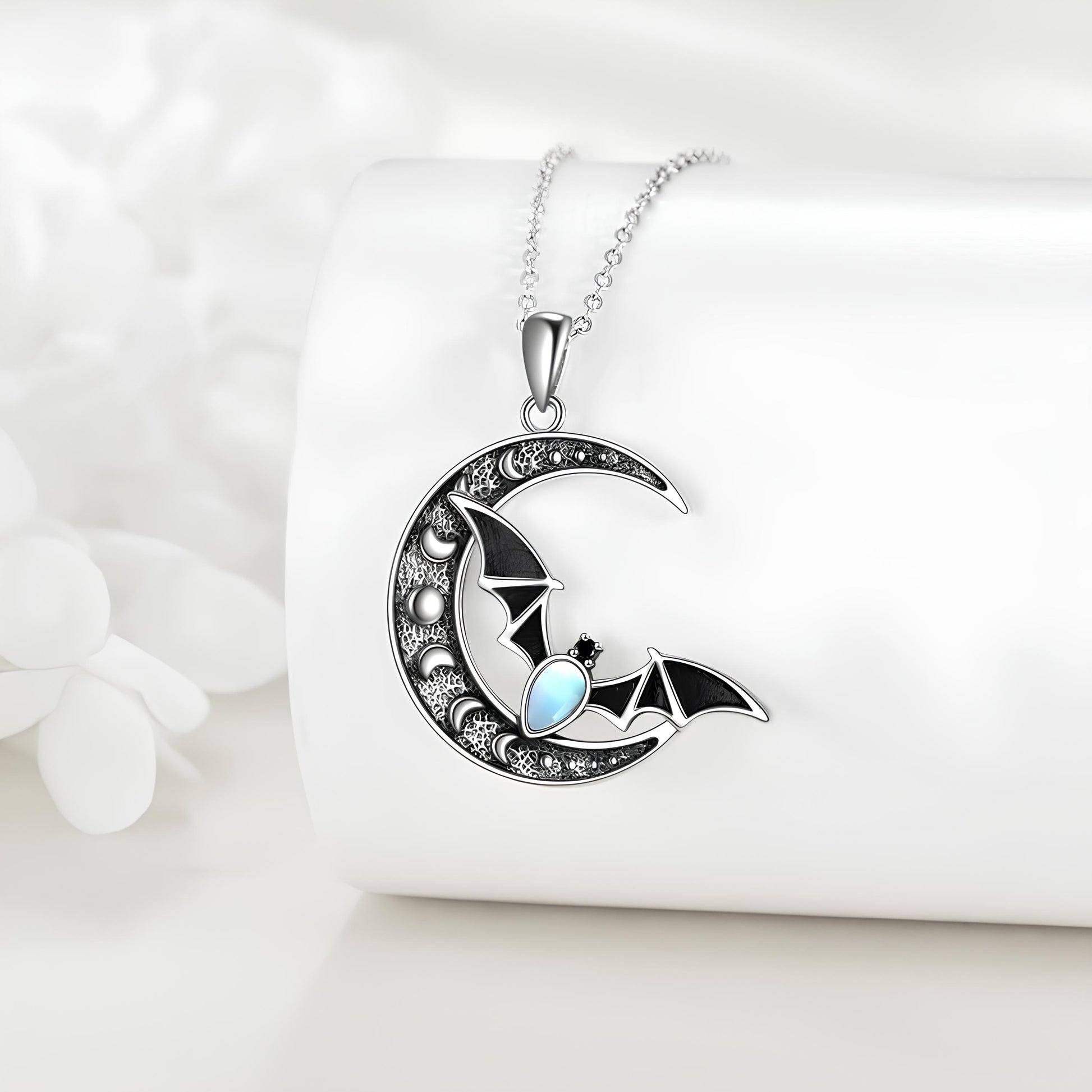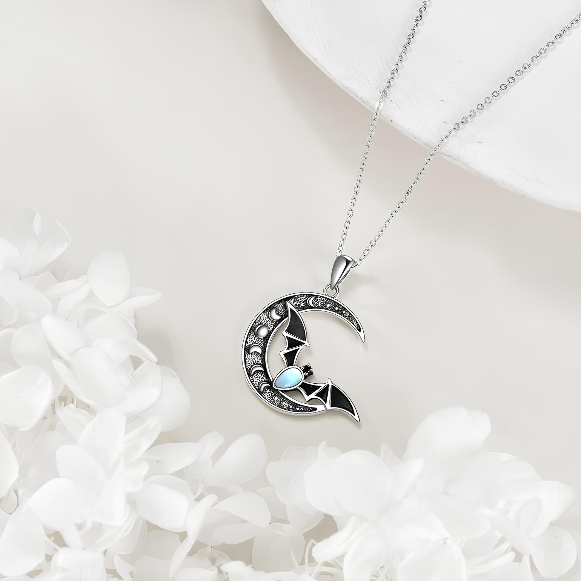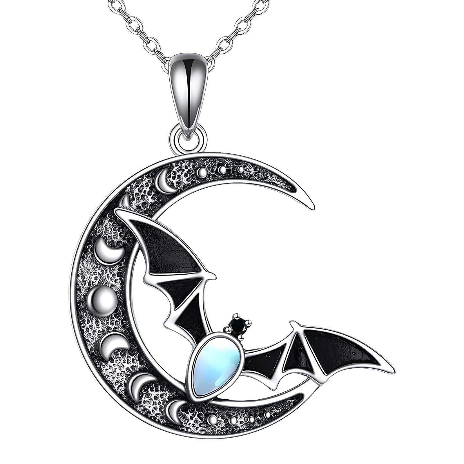 The Moonlit Batflight Crescent Necklace is a striking emblem of nocturnal wisdom and spiritual flight. Featuring a detailed crescent moon etched with the phases of the lunar cycle, it cradles a winged bat with a glowing opalescent stone as its heart—radiating mystical energy and lunar magick.