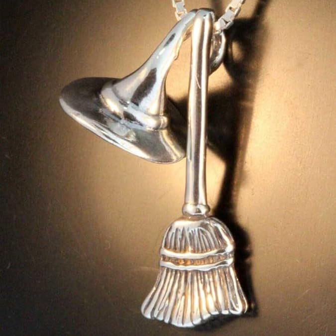 This necklace represents the witch’s journey between worlds. The broom symbolizes cleansing, transition, and the power to sweep away unwanted energies, while the hat stands for wisdom, spellwork, and connection to higher realms. Together, they form a sacred emblem of both grounded practice and mystical exploration.